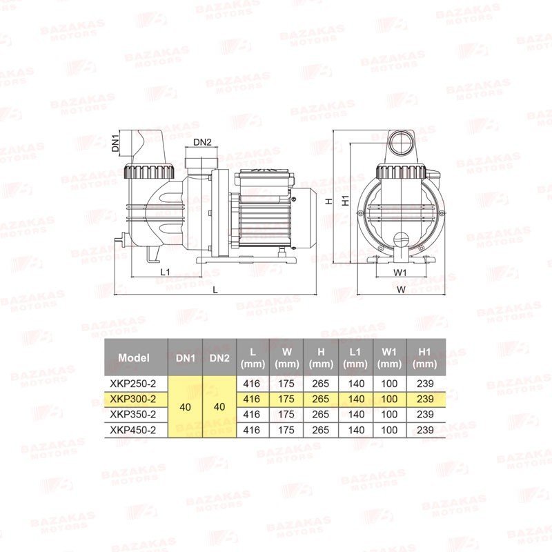 Ηλεκτραντλία πισίνας με προφίλτρο LEO XKP300-2 Κωδικός 02C30Χαρακτηριστικά:- 220V- 116L/min – 7.7m max- 0.4Hp- Στόμια 1 1/2″